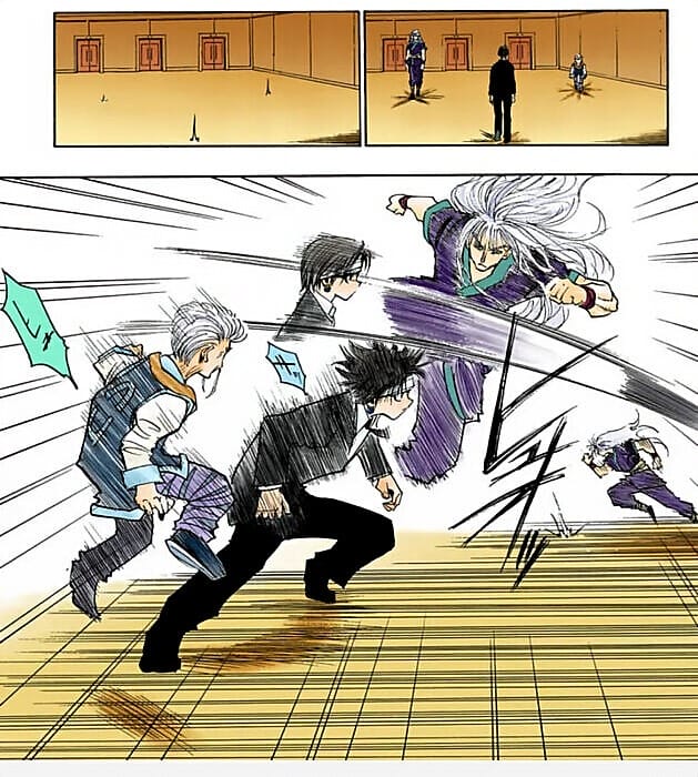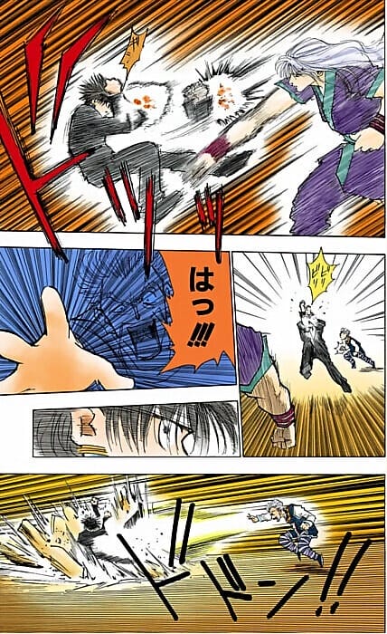 この、4つの動きを1コマに入れ込むことにより『スピード感』を絵で表現する。このような所業を冨樫はしたのですよ!!