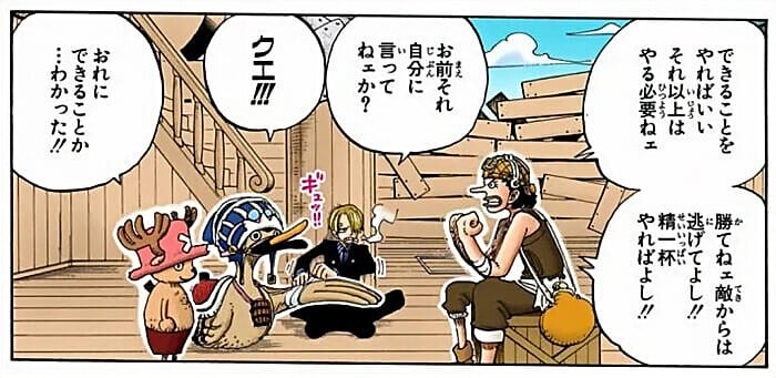 いかがでしょうか。ウソップが発した4つの短い文章は、ここまで強くて優しく、包括的な言葉の力を宿していたんです。